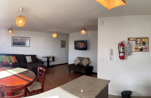 Experience the vibrant charm of La Floresta, Quito’s bohemian district, in this spacious and light-filled one-bedroom suite. Designed by world travellers for world travellers, this third-floor apartment features sweeping mountain views through nearly full glass walls, a cozy and functional layout, and easy access to the city’s best cultural, culinary, and natural highlights.