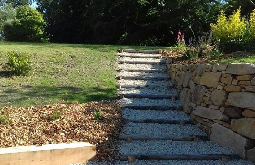 small traditional old house in old stones located on the GR 34 with pretty south canopy not overlooked overlooking garden with a bedroom, a kitchen and an Italian shower room. Possibility to rent a second house of the same type next to it with a single room, a sofa bed with quality mattress (width 1.60m) an open kitchen and an Italian shower with supplement of 40 € / night (minimum 4 nights).