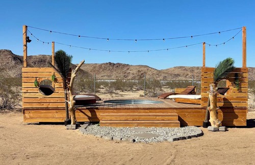No, this Joshua Tree cabin does not have a swimming pool. Check the Facility Overview section for details about the pool and other available facilities.