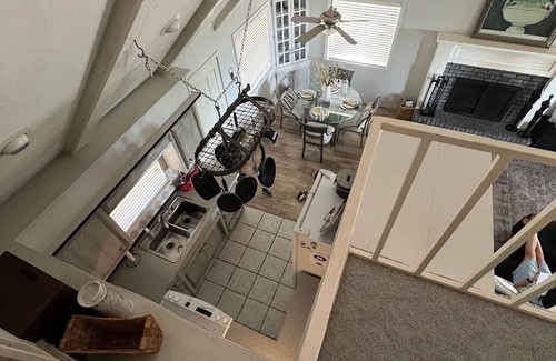 Bedrooms include a master with a king bed and a two king bed loft (for a total of 3 king beds). The master bathroom has the standard vanity, toilet, bathtub/shower, and the loft bathroom is accessed by two doors with one leading to the vanity and toilet, and the other leading to a bathtub (no shower). There is plenty of space for everyone to keep up with daily routines.