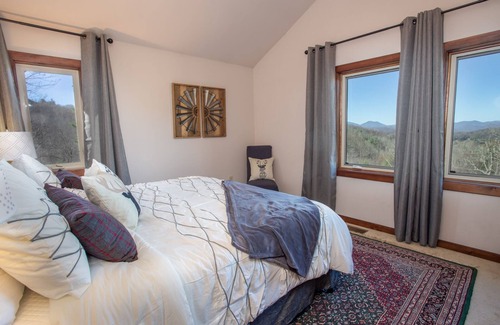 Mountain View Chalet is a charming chalet with sweeping views of the Blue Ridge Mountains. Located between Boone and Blowing Rock, this home is close to many local attractions, such as Appalachian Ski Mountain (15-minute drive), Tweetsie Railroad Amusement Park, and High Gravity Adventures Zipline and Aerial Park (10-minute drive). The scenic Blue Ridge Parkway provides hiking trails, lakes, waterfalls, canoeing, and kayaking and is accessible in less than a 5-minute drive.