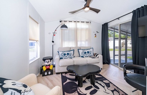 PRIME LOCATION! Sleeps 4! Private home only minutes to Disney and all Orlando theme parks! NEW AC, Roof, floor and everything! Walking distance to all stores and restaurants. Free parking and free essentials and worry-free check in process. Customized high-end furniture, a Queen-size bed with Beautyrest mattress and a queen-size sofa bed. Full-size kitchen, spacious patio, and outdoor dining table! Enjoy the pool, mini golf and club house after the day spend at parks or other world-famous events!