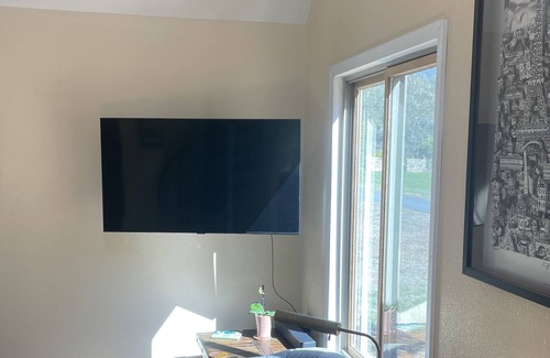 This 1,100 sq. ft. quiet and serene Chic Country Cottage, located in the heart of Sonoma Valley Wine Country, is just minutes from some of the premier wineries in Sonoma and Napa County. The Cottage is surrounded by a large cedar deck and BBQ porch with bucolic views of the Mayacamus Mountain range, oak groves, hilltop vineyards, and expansive country landscapes in all directions. It is on a private 3/4 acre setting on a larger property we call Froggy Oaks Estate as we have several 100-year plus oak groves and a chirping frog population that becomes active (croaks) in our meandering winter creek and pond. It has two queen beds: one in a downstairs bedroom and the other in the open railing upstairs loft. Both bedrooms have queen beds, dressers, and work desks. It sports two bathrooms (one full bath with tub/shower/bidet and one-half bath with sink and toilet). The downstairs bedroom and living room have 42" smart TVs. The living room comfortably accommodates seating for six people. The dining room has a table and four chairs.