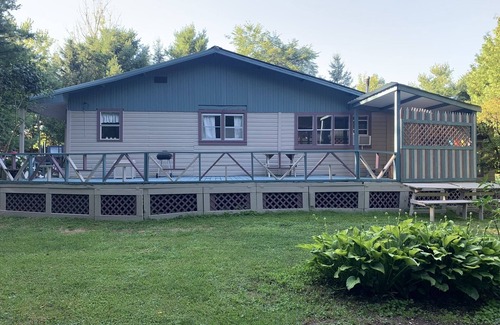 Charming newly remodeled cottage on10 acres with private fishing lake next to state park. Fully furnished, full amenities, boat, fishing, hiking, peaceful, private and romantic. You will not be disappointed. Owners reside on property. Vegetation between the two houses