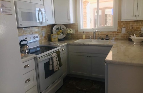 This bright and comfortable casita is a cozy retreat; it is appointed with all the amenities you need to enjoy your stay. The house has it's own entrance with a patio to catch the Sonoran sunsets. There is a bright, full kitchen with an eat-in bar area and beautiful marble countertops. The bedroom has a queen-size bed and it's own tv. Other features include a pullout sofa, full-size washer and dryer, wireless internet, Direct TV, Keurig, and a dedicated parking spot.