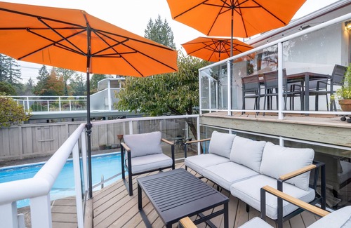 Relax and recharge with the whole family at this peaceful home. Situated on a hillside plateau in one of the most desirable North Shore neighbourhoods, this home offers a unique balance of mountainside seclusion and connectedness to destination communities, such as Lower Lonsdale Quay, Edgemont Village and the North Shore mountains. Explore nearby hiking trails, shopping and sight-seeing attractions, and then cozy-up at home in a beautiful living space with your family and friends. Enjoy the expansive two-level patio deck - with dining area and conversation set - overlooking large well-maintained heated pool (available late-Spring through Summer to end-Fall).