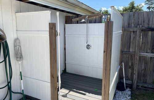 completely private 2 bedroom/2bathroom homw with outside shower and firepit.Two bedrooms plus a queen sleeper sofa. Sleeps 6 comfortably. Full kitchen with all appliances ,dishwasher, double sink,range,full refridgerator with icemaker, coffee maker and microwave.Recently renovated,all new furnitures linens and amenities.Fully fenced backyard for safety of pets and privacy.Large shaded porch.