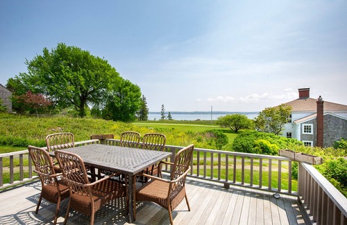 You may never want to leave the Honeymoon Cottage on Wooster Farm. It is a cozy two-bedroom cottage that sleeps 5 and has a new kitchen and exposed wood ceilings. You can see the sunrise over the water from the porch and the sunset over the water from the back porch! You can also share the 18-acre estate with the Main House at Wooster and use the tennis court with views of the ocean from two sides, a private dock with moorings, two private beaches, lovely gardens and woods, and a 200-year-old large barn used by famous painter Frank Benson.