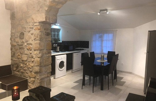 Ideal for a stay with family or friends this accommodation is composed of 2 bedrooms including 1 quadruple room of 35 m2 and a double room with all the necessary comfort and storage, a living room and a fully equipped American kitchen 1 bathroom water with Italian shower and wc. Private stone house belonging to a large manor house which belonged to Sarah Bernard emblematic character of the stage and the theater. 10 parking spaces, along the Seine, 12 minutes walk from the station. Close to Melun, Barbizon, Fontainebleau and 45 km from Paris and 1h10 by car from Orleans.