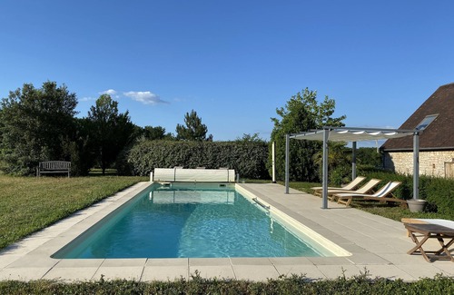 quiet house, near a small hamlet, 3 spacious bedrooms upstairs with 3 bathrooms and individual toilets, on the garden level large living room of around 50 m2, with kitchen area, living room and dining room dining room, large swimming pool 4m by 12m, large garden, 18-hole golf course 10 minutes away. typical quercy village with its fortified and classified church, accessible a few minutes walk with bakery-grocery store. pharmacy, gas station and small supermarket 5 km away in cressensac. located at the crossroads of the lot, the corrèze and the dordogne, a multitude of tourist sites are nearby within an hour's drive: sarlat, lascaux caves, collonges la rouge, rocamadour, padirac, turenne, the vineyards of cahors for wine lovers.