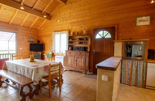 3 km from Cubjac and 12 km from Thenon for shops, independent house of 80 m2 near the owners' house. Ground floor: Living room with wifi, with lounge area and kitchen area. 2 bedrooms: The 1st with 2 bunk beds 90 and 1 bed 140 and the 2nd with 1 bed 140. Bathroom with 2 sinks, bathtub and shower cubicle. Separate toilet. Laundry room with washing machine and cleaning equipment. Electric heating and air conditioning. Enclosed land of 600 m2. A courtyard of 70 m2 with barbecue. Terrace of 20 m2 with garden furniture and parasol. Parking. Large balcony with bench, small table and chairs. enjoy the private swimming pool (5m x 3m, depth: 1m30, chlorine, secured by a barrier, unheated, open from mid-June to September) and a relaxation room (board games, table football and reading). Household linen, heating, air conditioning and electricity included. Bathroom linen €6/person/change. Sheets €14/bed/change. End of stay cleaning €50. 24 km from Périgueux (Voie verte de la Vallée de l'Isle, Cathédrale Saint-Front, Musée Vésuna, Tour Mataguerre, Tour de Vésone), chalet without vis-à-vis located on a height with panoramic view of the forest and meadows. 10 km from the Grotte de Tourtoirac and 20 km from Montignac (International Center for Parietal Art Lascaux 4). Other sites to visit: Château d'Hautefort, old forges of La Boissière d'Ans, Savignac Lédrier, Château des Bories in Antonne, Truffle Ecomuseum and visit of the truffle fields in Sorges. Hiking and mountain biking on site. Animals nearby (1 pony, 2 donkeys and 3 sheep). At your disposal: Swimming pool, relaxation room, covered courtyard with ping-pong table (rackets and balls provided), darts, swing, badminton, table football, scooters, baby tricycle, trampoline, small children's cabin and various games. Boules pitch (boules provided). Baby equipment: 1 baby bed, high chair, playpen.