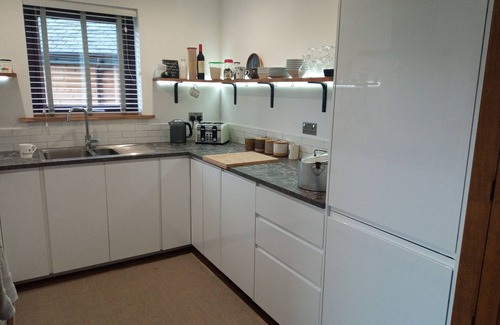 The newly installed kitchen has a fridge,freezer, a hob, an oven, a kettle, toaster,dishwasher, airfryer and a microwave.