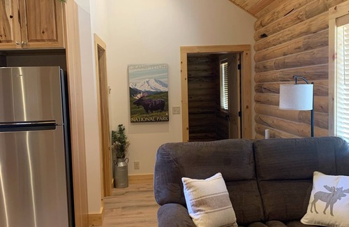 Newly constructed log cabin in 2021. This spacious 1 bedroom, 1 full bathroom cabin is located in a quiet neighborhood in beautiful Teton Valley, Idaho. With a full kitchen, dining area, cozy living area complete with an electric fireplace and a dedicated workspace, this cabin checks all the boxes. Lightning fast Wifi and a Smart TV complete the space. Queen bedroom is spacious with a large closet and a pillow top mattress. An air mattress is available with additional bedding and pillows. Relax on your front porch with a glass of wine and take in the fresh mountain air and views. BBQ grill is also provided. In the summer, enjoy the fire pit located on the property while relaxing in the outdoor lounge chairs that are provided. Property is located minutes away from fishing and mountain biking. This is a great location for exploring beautiful Yellowstone and Grand Teton National Parks. Close to Jackson Hole, WY as well as Grand Targhee Ski Resort.
