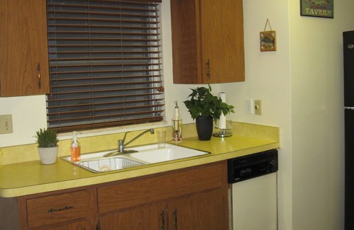 This is our nostalgic, 1340 square -foot, 'Old Florida' villa, with a mailbox at street. There is a laundry room on site and a coin operated on a mile away. Across the front of the villa is a cozy sunroom that overlooks a peaceful setting - a grassy area in the front yard with a large oak tree for shade. The sunroom has 2 comfortable chairs for reading and relaxing with your morning coffee. There is also a desk where you can keep your laptop set up. A covered patio area, with a small table, chairs and gas grill, is in a private enclosed garden area and backyard area for sunning. Beach chairs and towels are there for your use. There is a laundry room in the back of the carport. The villa is quaint and charming. It is only 2 miles to Siesta Key beach access and 5 miles to the public beach. Turtle Beach is at the South end of Siesta Key. A state-of-the-art county library. A public golf course is 1/2 mile and 1 mile to Publix's and pharmacy, and 2 miles to several restaurants, bookstore, Stein Mart, Marshall's, etc. and Sarasota Mall nearby. This is a quiet, residential neighborhood, and an excellent location to everything. A very nice, comfortable place to spend the winter. Sorry, no pets or smoking. Security deposit is required. Thank you.