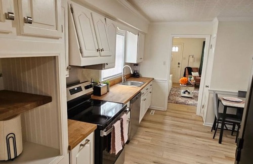 Discover the perfect blend of comfort and quality in this newly renovated 2-bedroom, 2-bath home. Featuring 2 stunning rooms with a large queen-size bed in each and an additional sleeping room on the couch in the living room. Additionally, this home offers other sleeping options, including a cozy couch and an air mattress. This modern retreat is crafted to impress and provide the ultimate relaxation. Perfect for families or groups seeking a centrally located space next to everything in Evansville.