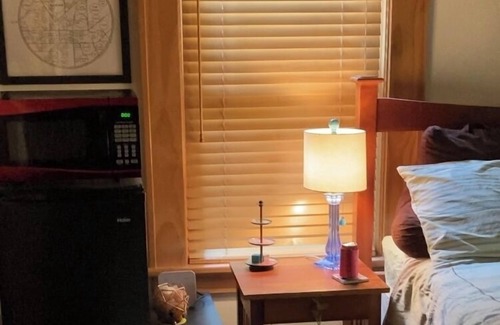 Make yourself at home in this adorable studio Atlanta retreat. The cozy space features 1 queen bed, a bathroom with a shower, and essential amenities like a hair dryer, heating, and AC. Guests can unwind in this soothing and tranquil environment, perfect for a relaxing getaway. Experience the magic of Atlanta at our studio featuring an en-suite microwave, mini fridge and Keurig coffee maker. The shared front porch is fully screened and features a small dining table, overhead fan and relaxing gliding sofa.