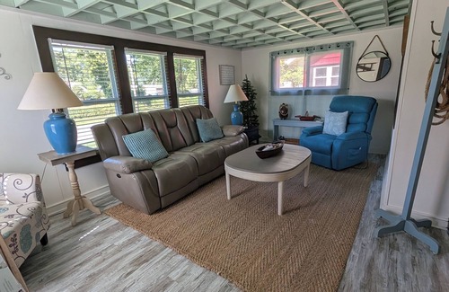 Calming, cozy, clean and laid-back cute little cottage. Child's room for the little one with a twin bed. Full with a fishing theme and queen for the queen. All bedrooms have televisions. And a free coffee bar for those who just want to kick back and relax. Also charging station for your electronic needs.
