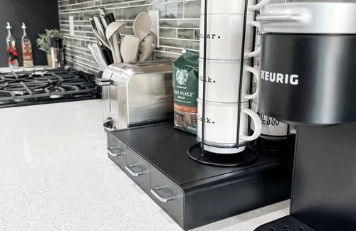 -Kitchen - Gas stove w/ oven, Refrigerator with filtered Water, Ice, Dishwasher, Keurig and Drip Coffee maker. Fully furnished with cookware and utensils.