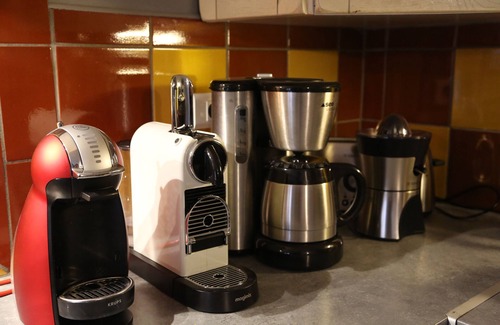 In the living area, two steps lead you to one spacious and bright living room, with an Internet area, lit up by two large bay windows. This room opens on a third bedroom (2 beds of 90 cm), a third bathroom with toilets and a self-catering kitchen, fully fitted (refrigerator, oven, wine cellar and even a piano).