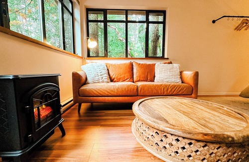 Situated in a quiet, mossy forest with a fairy-like ambiance and charming seasonal creek just outside, perfect for morning reflections and evening relaxation. The creek typically runs September - July (depending) and when it rains.