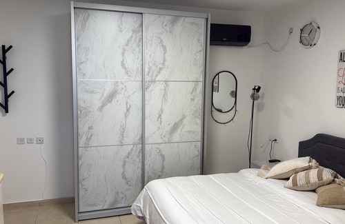 Escape to a fantastic studio in Eilat for an enjoyable getaway. This welcoming retreat features all the essentials for a comfortable stay, including an iron, AC, and heating. Relax in the cozy bedroom and freshen up in the modern bathroom. Whether you're here to explore the city or simply unwind, our place is the perfect home base for your adventures. Enjoy all that Eilat has to offer when you stay at our place.
