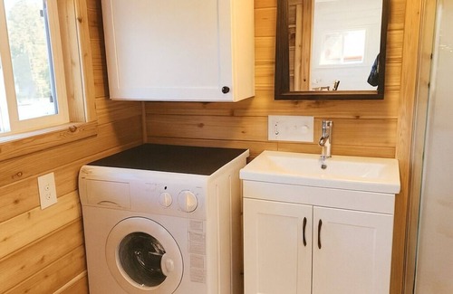 Wake to the gentle rustle of trees and birdsong, sip coffee with orchard views, and let the calm of nature guide your day. Inside, every detail is intentional—from the comfy sleeping nook and full kitchen to soft lighting and a stocked coffee bar—making tiny living feel surprisingly spacious and delightfully comfortable.