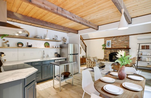Shiff Shack has everything you need for a quiet, comfortable stay. It features 2 bedrooms, 2 full, updated bathrooms, a private loft area that sleeps 4, a dedicated work space in the stand up loft, updated kitchen and 4 season room with another dedicated workspace. Relax and enjoy a glass of wine or a cup of coffee on the deck, sit by the firepit and make s'mores. This house sleeps 6 comfortably.