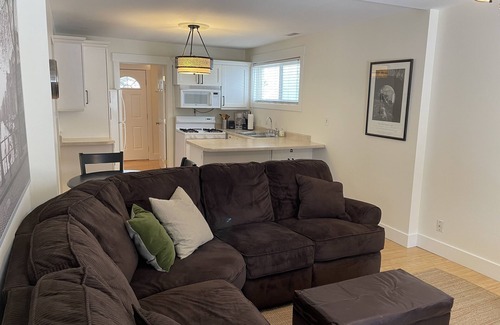Well cared for, the home is comfy, cozy and has everything you need...a small but well equipped kitchen, laundry room with front loading washer and dryer, 2 bedrooms, a full bathroom, private backyard and off street parking for 1-2 cars. One bedroom has a king sized bed and the other a queen.
