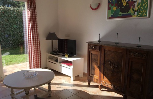 The villa is equipped with a large bedroom (160 cm bed) that can accommodate a child's bed, a living room with comfortable sofa bed, an equipped kitchen and a bathroom with shower and separate toilet. Located in a large garden with trees and flowers, it is adorned with a salt pool with paddling pool for children. The parking is secure inside the property with digital code. All shops are nearby and shopping is on foot. For tennis lovers courts are 50m from the house. The region offers magnificent walks and the discovery of our beautiful 'golden islands' Porquerolles Port cros and le levant.