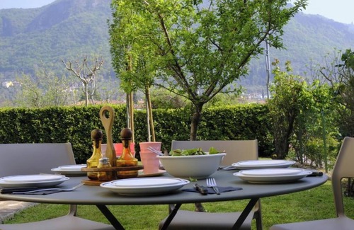 Consider this villa your home away from home while you visit Salò. This charming property features 3 bedrooms, including a king bed, twin beds, and even a crib for the little ones. With 2 bathrooms equipped with all the essentials, guests can relax and unwind after a day of exploring, either in the house or in the secluded garden equipped with dining table and chairs plus a cosy corner and 2 chaise lounges. Fall in love with Salò and enjoy the magic it has to offer.