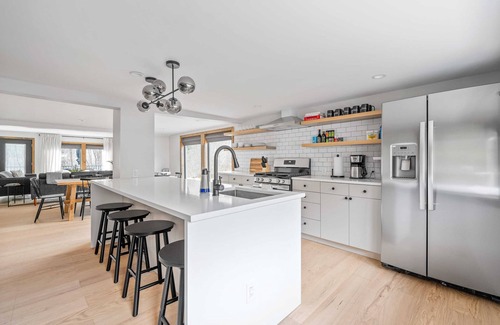 Enjoy your morning coffee by the wood burning fireplace, gazing out the picture window into the lush foliage, or an afternoon cocktail al fresco on our patio overlooking the large yard surrounded by trees. We have everything you need for the perfect getaway, whether you love hiking, skiing, relaxing, cooking, adventuring or all of the above.