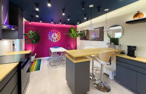 Thoughtfully designed & furnished. Color & Light-filled HAUS. Modern & out-of-the-ordinary. Inspiring. Restful. Awesome Tech with Alexa. Super-comfortable & clean with European comforts, beds & bedding. Good LivingRoom with 70" TV with Streaming, & Video Fireplace. Nicely equipped Kitchen. In a good, quiet tree-lined neighborhood, walk 2 blocks to Downtown. Very pleasant just to walk around our neighborhood...