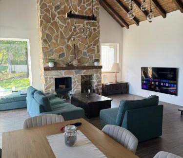 Offering a garden, Cherryhouse provides accommodations in Drobnjaci. This property offers access to a balcony, free private parking, and free Wifi. On clear days, guests can head outside to enjoy the villa's outdoor fireplace or simply kick back and relax. Providing a terrace and mountain views, the spacious villa includes 2 bedrooms, a living room, satellite flat-screen TV, an equipped kitchen, and 2 bathrooms with a bidet and a shower. Towels and bed linen are provided in the villa. Additional in-room amenities include wine or champagne. There is an on-site snack bar, and during warmer months you can make use of the barbecue facilities. The villa has a picnic area where you can spend the day outdoors. St. Sava Temple is 20 miles from the villa, while Belgrade Train Station is 22 miles away. Belgrade Nikola Tesla Airport is 28 miles from the property.