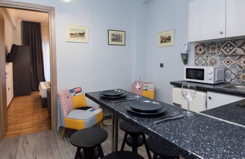This well-appointed apartment is brand new, bright, and cheerful! Located in the Metaxourgio district of Athens, it sits just at the northern edge of Central Athens. It's a short walk to the nearby Metro station, where public transportation can whisk you across town or out to the area's best beaches. If you prefer, you can take a leisurely walk to most of Athens' cultural sites. Each of the city's districts has something of interest along the way.