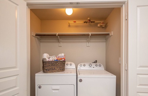 Hungry? We have a fully-equipped kitchen with modern stainless steel appliances, including a microwave, electric stove, fridge, and dishwasher for all the foodies who love to cook. We also got you covered with all the cooking utensils and basic seasonings (and some a little more than basic) you’ll need to whip up something delicious. Have your kids sit at the cozy breakfast bar and show off your pancake-flipping skills! Don’t worry about where you’ll get your caffeine fix on the first morning of your stay either because complimentary coffee and tea are stocked in the cabinets, along with a coffee maker and a teapot.