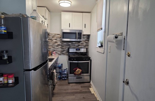 Discover the beauty of Chicago from this private bedroom apartment. This delightful space features a cozy living room with a sofa bed thats available for booking separately, dresser, work desk, mini portable closet and cupboard. Its perfect for relaxing after a day of exploring the city as its less than 30 minutes to the loop. The bedroom boasts a comfortable queen bed for a restful night's sleep. Enjoy the convenience of amenities like WiFi, AC, and a paid community washing machine. Unwind after a long day of traveling. Make your holiday one for the books with a stay at our place. There is two bottles of water per guest in the fridge. A water filter to refill your water with when needed as long as the water filter is filled up after. There is shelf space at the top of the fridge for your food. Items in the kitchen outside of pots, utensils and plates can be used if asked first.