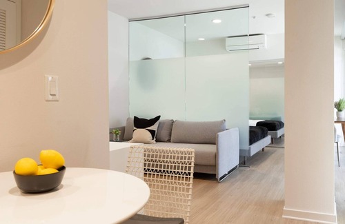 Chic Studio - Underground Parking by 1Furnished has 1 Bedroom , 1 Bathroom, and max occupancy of 2 people. The minimum rental for this property is 1 nights, but this can change depending on the season you plan on staying. Previous guests have given good rated it, and VRBO labeled it a top-rated Apartment because of the excellent services rendered by the owner or manager of this Apartment, and has consistently provided great experiences for their guests. Most families or guests that use it recommend it to their friends and some of them are repeat guests. Apartment has a friendly neighborhood, and the Downtown has interesting places to visit. If you want to learn more about the Apartment in Downtown, such as places to visit and things to do nearby, you can check below to learn more.