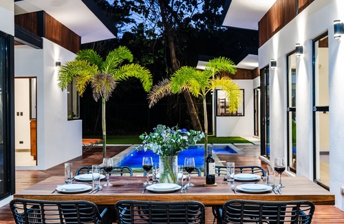 Welcome to Casa Amuga, proudly hosted by Stay in Tamarindo. This gem is a newly constructed modern home for wildlife lovers or surfers. Its standout feature? Location. Just a brief 4-minute walk from the beach, accessible via a scenic path through the jungle, and conveniently situated between 8 and 15 minutes walk of restaurants, fitness center, and more.