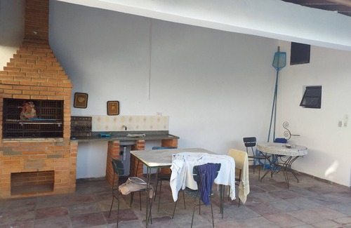Delightful house with 4 bedrooms only 3 blocks from the best beach of Itanhaém, being able to come and go on foot. The house is on a corner and we have a garden of 2 sides being that it is all walled, so very safe. The room is divided in 4 environments being living, games, dining and TV. In one of the backyards we have a super delicious pool with barbecue that can enliven your stay. Our garage holds up to 3 cars.