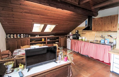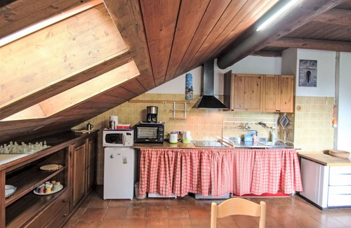 3-room apartment 80 m2 on 2nd floor. Partly with sloping ceilings, renovated in 2023, practical and rustic furnishings: living/dining room with 1 double sofabed (140 cm), TV. Exit to the balcony. 1 double bedroom with fan. 1 room with sloping ceilings with 2 beds. Kitchenette (mini-oven, dishwasher, 4 induction hot plates, kettle, microwave, freezer, electric coffee machine). Shower/bidet/WC. Gas heating. Heating available only from 01.10. to 30.04. Balcony, small garden. Balcony furniture, barbecue. Distant view of the lake. Facilities: washing machine, children's high chair, baby cot for up to 2 year olds, hair dryer. Internet (WiFi, free). Please note: non-smokers only. Maximum 1 pet/ dog allowed. Fire extinguisher, no lift. IT103044C2BBHZAD6Q