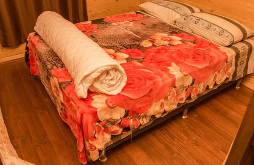 Cabin with full kitchen, with linens included (not including bath towels), fireplace, fans, wifi and pay TV.