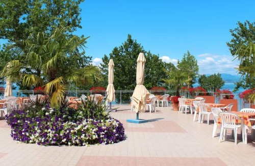 The tourist complex CAMPING CISANO SAN VITO is situated in the hamlet of Cisano, between Bardolino and Lazise (2,5 km in each direction), on a property of approx. 17 ha, completely fenced and with a splendid panoramic view. It consists of the two complexes Cisano and San Vito, some directly bordering the lake, some above the Gardesana road, approx. 300-700 m from the lake (connected by a pedestrian subway and a car tunnel). Nice sandy beach with deck chairs and umbrellas and direct access to the public sandy beach. large, child friendly holiday village "Cisano & San Vito". In the district of Cisano 2.5 km from the centre of Bardolino, 2.5 km from the centre of Lazise, 700 m from the lake, 700 m from the beach, direct access to the beach. For shared use: property 17 ha (fenced), 3 swimming pools (seasonal availability: 15.Apr. - 30.Sep.). WC in the pool area, children's pool, slide, outdoor shower, hot tub, tennis (extra), table tennis (extra), volleyball court, children's playground. In the complex: reception, restaurant, bar, WiFi (extra). Fitness room, shopping facilities, kiosk, washing machine (extra), tumble dryer (for shared use, extra), bicycle rental. Parking at the house, public parking extra. Shop 2 km, pebble beach 700 m. Nearby attractions: Verona 28 km. Please note: suitable for families, childminding in the season. Groups of teenagers on request only. The photograph shows a typical example. Obligation to wear bathing caps.