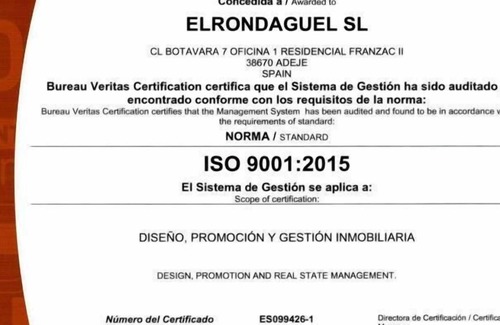 In order to maintain a Quality Management System and apply an adequate Environmental Management System, ELRONDAGUEL S.L. is certified in accordance with the international standards UNE EN ISO 9001 and UNE EN ISO 14001.