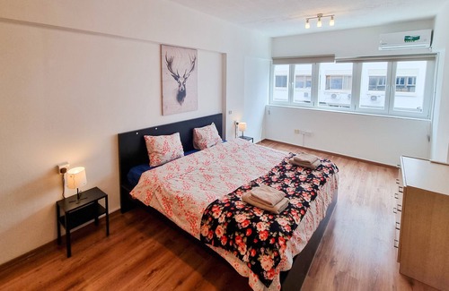 Welcome to the CityCenter Apartment, a luxurious and fully-equipped holiday stay in the heart of Larnaca. Featuring two spacious bedrooms with double beds, wardrobes, mirrors, and desks, you'll have everything you need to rest, relax, and recharge. The bedrooms also come equipped with locks, giving you the privacy and security you need to feel at home. Whether you're traveling with friends, family, or a loved one, the CityCenter Apartment is the perfect place for you. Our apartment is ideal for two couples or a family and can comfortably accommodate up to five guests. The living room features one cozy sofa, providing even more space for guests.