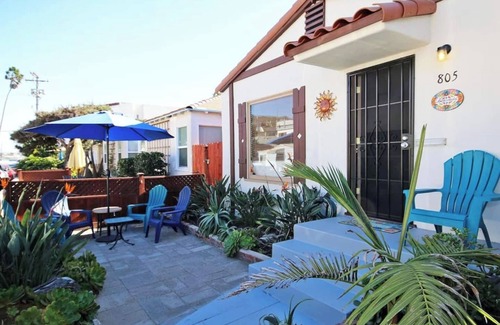 Classic Mission Beach cottage located footsteps from the sand! Rated 5 Stars! Perfect beach vacation. Front patio with barbecue. Supplied with beach towels, beach chairs, boogie boards & sand toys for the kids. Family friendly - high chair, pack & play, and stroller supplied. Features garage for parking and washer/dryer. Even has window A/Cs (a rare luxury in this area). 2 miles from Sea World & 8 miles from the airport. READ OUR REVIEWS!