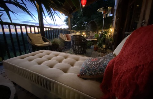 The view of the ocean from the deck is particularly spectacular during the Winter months. As the sun sets, the clear skies turn flaming orange. The days are still warm, and great weather for hiking, horseback riding, uncrowded beaches and the best surfing conditions of the year. In the evening, you can dine out in Montecito or SB's Funk Zone; but the crisp evenings are also ideal for staying in the cabin and cozying up to the fire or catching up with friends and family out on the heated deck.
