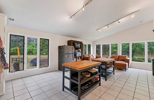 You will immediately be immersed in the quiet sanctuary of your own pine-lined private drive. You’ve made it to your own 4 acre oak-shaded sanctuary and found this humble abode to be the perfect place for you and your family. All 4000 sq ft of The Ranch have been pain-stakingly restored and remodeled over the last 2 years so you are stepping into a brand new oasis! We have updated the floor plan to include 5 bedrooms, and 4 luxury bathrooms. The expansive living room opens up to the palatial dining room which is attached to the stocked and ready to go kitchen! There are a few bonus rooms which can also be used for sleeping when they aren’t being used for playtime, work, or studying. Several big screen smart TVs and sound systems have been installed throughout the house to accommodate your 21st century entertainment needs. There is a music nook available for use to any aspiring musical artists. And do not forget to whistle the evening away in the secluded yard laying about the hammock, picnicking in the shade of the magnolias, grilling on the lawn, or relaxing by the fire side. During the cooler months you are welcome to snuggle with a good book or a glass of wine and enjoy the warmth and ambiance of the wood burning stove. We are in the heart of horse and golf country with plenty of fun just a few miles away. This gorgeous home is centrally located just 3 Miles from downtown Southern Pines and 6 Miles from downtown Pinehurst. Within 10 minutes are numerous public parks, splash pads, miles of walking and biking trails, dozens of playgrounds, frisbee golf, tennis and basketball courts open and lit until midnight during the summer months. Your entire family will find something exciting for everyone of all ages. Be sure to stay Friday nights so you won’t miss free movie nights in the park, taco trucks at Southern Pines brewery, or live music at the downtown amphitheater. The home may be rented by the day, week or month fully furnished. All utilities are included in the pricing. You have the privacy and seclusion of your own driveway, front yard and space around your rental. We do allow pets, please discuss with Lauren before booking. We look forward to hosting you!