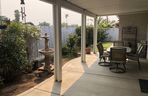 Spacious, great location: walk to Old Town, bike Clovis trails, Fwy to Yosemite, Sierra Nevadas, Clovis Hosp, Save Mart Center. All amenities provided, covered patio & BBQ in the back. Don’t miss it!!