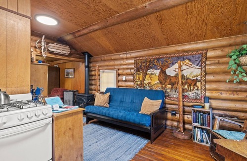 Come enjoy this little historic nugget close to downtown Red Lodge. This rustic cabin offers a studio style queen bed along with small living room, full bathroom and kitchenette area. During pleasant weather you can enjoy a ten-minute walk downtown from this location. There is only room for one compact car to park here so please note this before booking. This charming cabin has been in the loving care of the same family for 60 + years and that family has worked with Pepsi for most of that time so located within these log walls you'll find antique Pepsi gems that give much character to the space. When the sun is shining sitting outside in two Adirondack chairs is a perfect coffee spot in the morning. This cabin is a worker cabin built in the 1930's for crews that created the Beartooth Highway. If the walls could talk, we would hear some doozies! Even with all this rustic charm, you'll still enjoy Wi-Fi and streaming tv when you choose.
