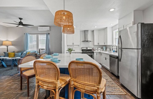 Welcome to your Galveston getaway! This professionally designed 3-bedroom, 2-bath home is just a short walk to the beach and perfect for families or groups up to 15. Enjoy cozy indoor spaces and a charming outdoor area complete with a fire pit and comfy furniture. Whether you’re relaxing after a day in the sun or exploring the island, you’ll feel right at home. Unwind, make memories, and soak up the best of Galveston from this inviting coastal retreat.